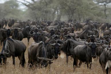 Schlüsseltiere der Serengeti sind die 1,3 Millionen Gnus – von ihnen hängen Zahl und Vielfalt aller anderen Arten ab. Sie gebären jährlich eine halbe Million Kälber, die etwa die Hälfte der frischen Gräser konsumieren. Jeden Tag scheiden die Herden 500 Lastwagenladungen Dung und 125 Tanklastzugfüllungen Urin aus, was dem Ökosystem wieder wertvollen Dünger zuführt. Ihr Pflanzenkonsum entzieht der Natur Brennmaterial und mindert dadurch das Feuerrisiko für die Bäume der Savanne. Auf der anderen Seite bewahren sie offene Flächen, indem sie junge Bäume zertrampeln.