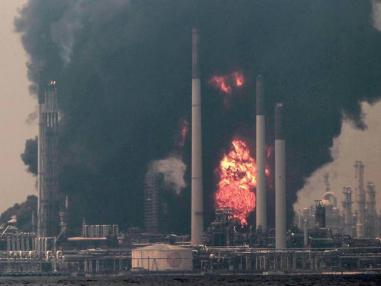 Zunächst hatte der Konzern bekannt gegeben, der Brand sei unter Kontrolle. Tagsüber verstärkte sich das Feuer jedoch. Von drei Explosionen ist die Rede. Rettungsmannschaften versuchten mit Hilfe von Kühlmaterial zu verhindern, das sich Tanks in der Nähe des Feuers überhitzen.