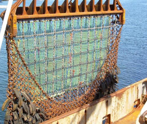Beim Typ der Scherbrett- Grundschleppnetze befindet sich auf der Unterseite des Eingangs ein Grundtau, das über den Meeresboden gezogen wird. Zwei seitliche Scheerbretter ziehen das Netz auseinander. Diese Bretter sind extrem schwer und können Furchen in den Boden ziehen, wodurch Sediment aufgewirbelt wird.
